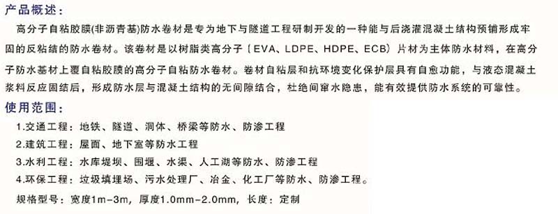 預鋪式高分子自粘膠膜防水卷材